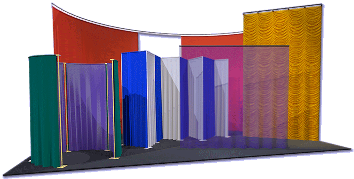 SoftGoods 2 is a Vectorworks® Plug-In Object that allow users to insert models of straight and curved curtains, borders, and pipe-and-drape runs in their drawings - either from-scratch or based on existing geometry. SoftGoods 2 is a Path Plug-In Object that can create single AND multi-segment objects (straight and curved), similar to Vectorworks'® Polylines. SoftGoods 2 models can be easily resized by dragging Control Points and making adjustments in Vectorworks'® familiar Object Info Palette. Other things like curtain height, trim, curtain openings, panel overlap, track visibility and pleat sizing can also be changed on-the-fly. For all SoftGoods 2 model parts, textures are automatically created and applied - including opaque drapery and scrims - in addition to applying, scaling, and positioning custom images. 2016 heralds a new relationship with Rose Brand®, allowing us to offer textures representative of theirfabrics. The SoftGoods 2 download package now includes sample custom textures, as well as a selection of popular Rose Brand® fabrics, optimised for Vectorworks 2016 and newer. For pipe-and-drape runs, the tool calculates spacing and tracks slider lengths and hardware and drape counts. Select text can be displayed in each SoftGoods 2 instance. NEW in version 2.55, SoftGoods 2's pipe-and-drape mode is greatly improved, offering a "Non-Sleeve" option for modeling systems similar to those offered by Wentex® and a new feature making creating arched openings easier. - We're